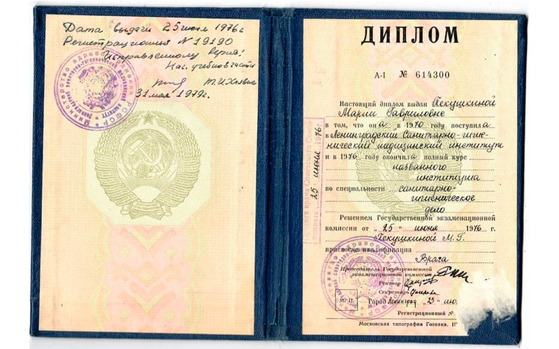 | 1976 г. - Ленинградский Санитарно-гигиенический медицинский институт, специальность "Санитарно-гигиеническое дело" |